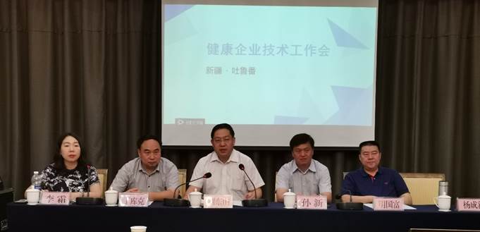 吐鲁番市卫健委副主任明国富、新疆维吾尔自治区疾控中心副主任援疆干部丁库克分别致辞感谢中国疾控中心职业卫生所对新疆等西部地区职业健康工作的支持。中国疾控中心公卫处刘东山副处长、中国疾控中心职业卫生所孙新副所长分别讲话,指出健康企业建设工作作为健康城市首个推出的健康细胞之一,是未来职业健康发展的趋势,同样要在西部地区推广发展使之走上可持续发展之路。