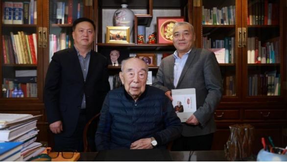 2024年10月29日,职业卫生所所长孙新、党委书记吕柯等一行4人前往天津,探望吴执中教授亲弟、中国工程院院士、中西医结合专家——吴咸中院士。吴咸中院士年近百岁,依然精神矍铄、思维清晰,对孙新所长和吕柯书记代表职业卫生所的探望和慰问表示感谢,并对职业卫生所计划举办“吴执中职业医学学术会议”给予首肯。在交谈中,吴咸中院士回忆起大哥吴执中教授的生前事迹,生动呈现了吴执中教授为国为民和我国职业卫生事业作出的卓越贡献,深深打动了在场所有人。探望结束,吴咸中院士将题写的“吴执中职业医学学术会议”墨宝及收录有吴执中教授珍贵影像书籍赠送给职业卫生所。