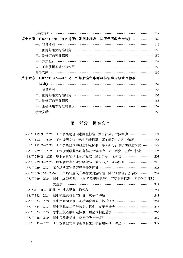 为更好帮助广大从事职业健康相关工作的专业技术人员深入理解和正确掌握新发布的职业健康标准,职业健康标准专业委员会秘书处组织标准起草人和有关专家撰写《职业健康标准及实施指南(2025)》,主要对新发布标准的技术内容和制定依据进行说明和解读。本指南分为两部分:第一部分为标准实施指南,主要对近两年新发布的16项职业健康标准的主要内容和制修订依据进行说明。第二部分内容是已发布的标准文本。