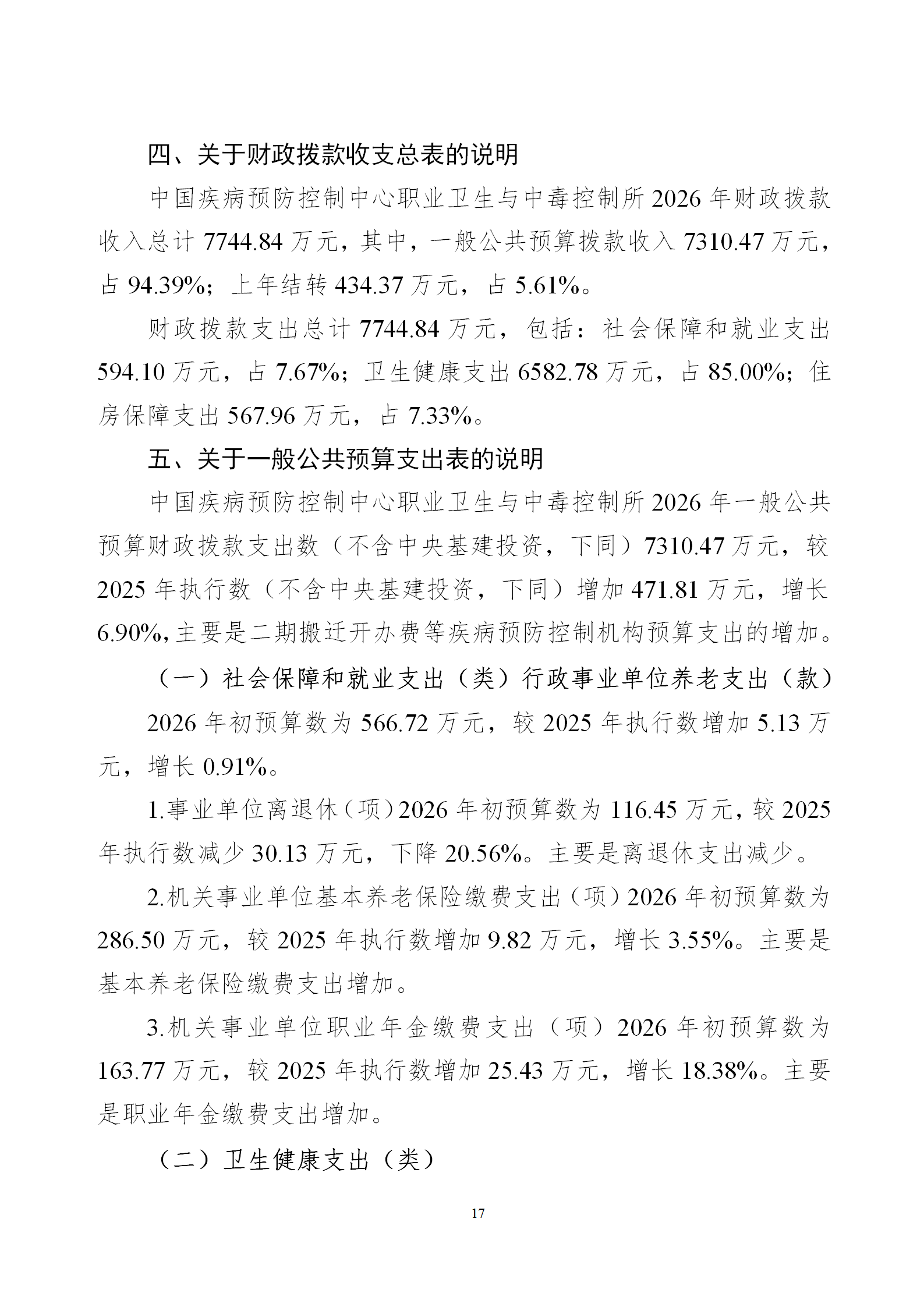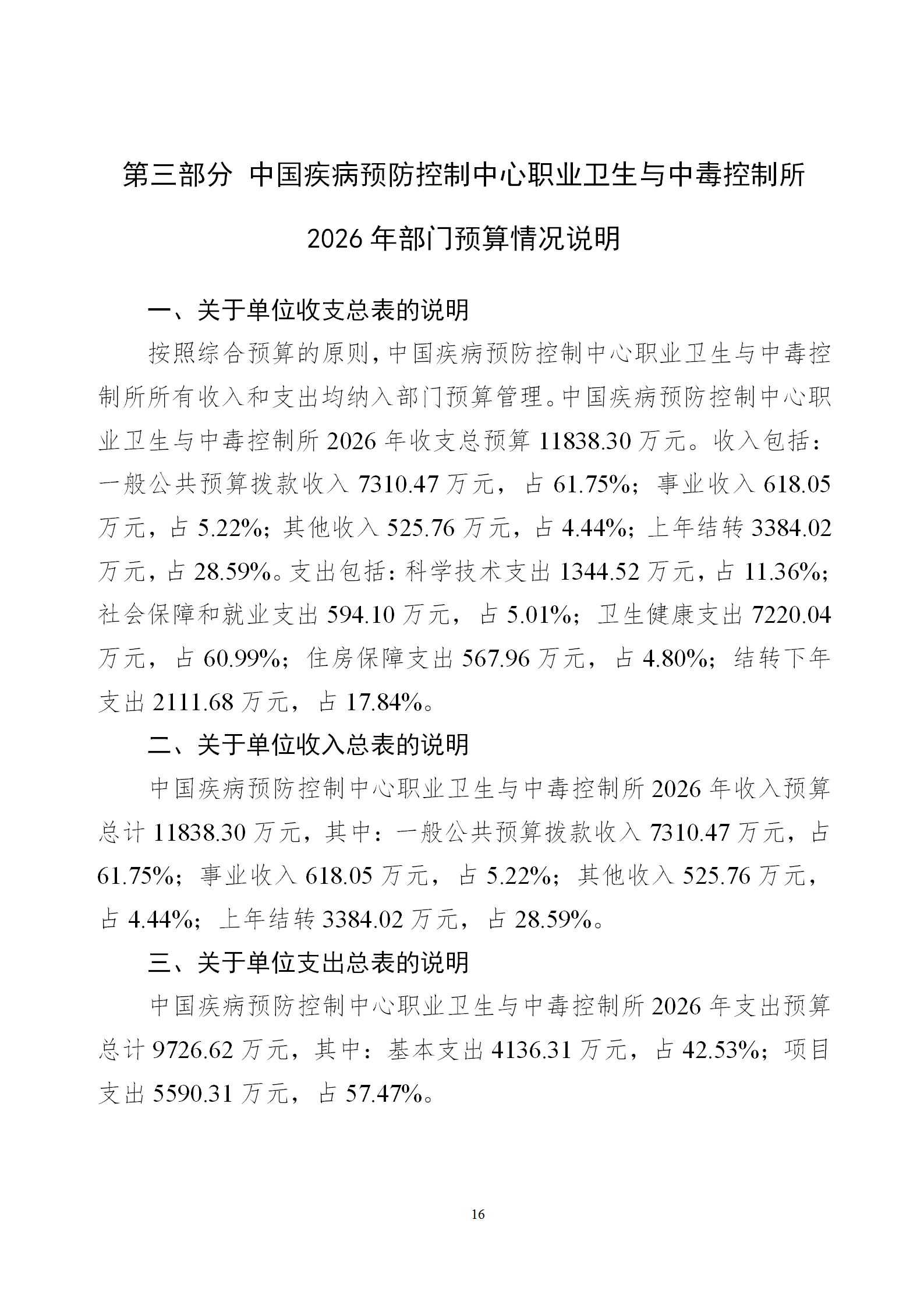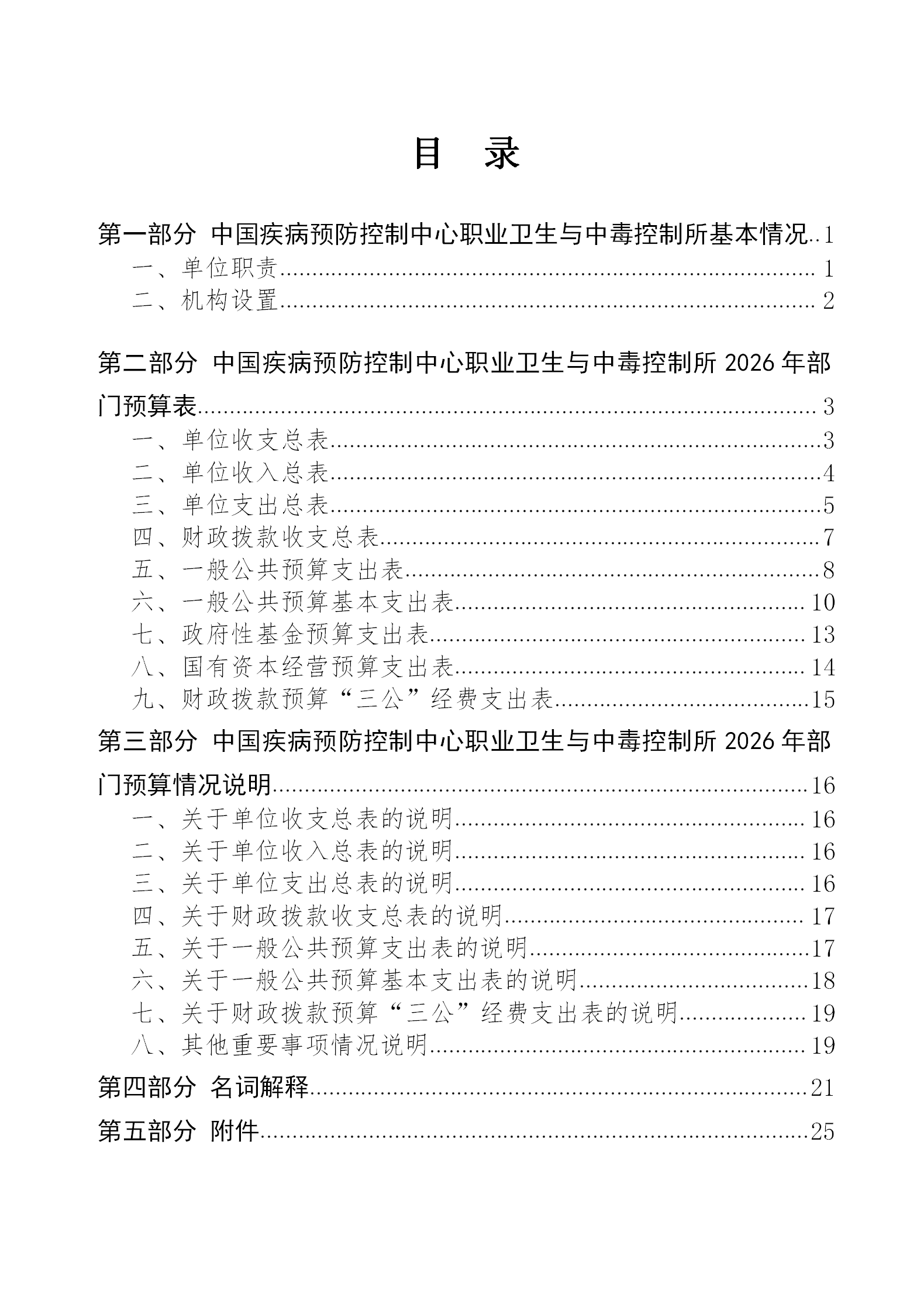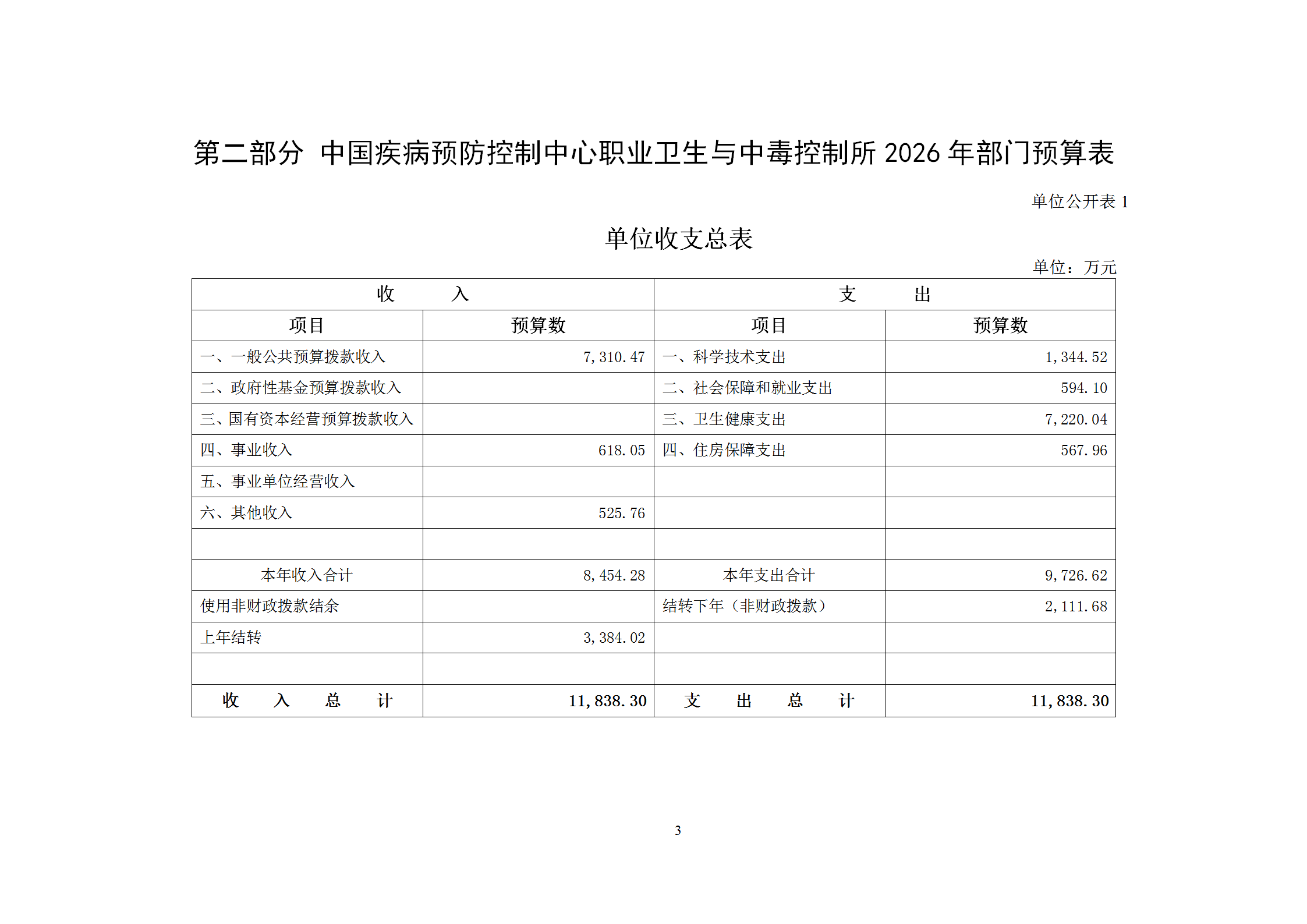 中国疾病预防控制中心职业卫生与中毒控制所2026年部门预算