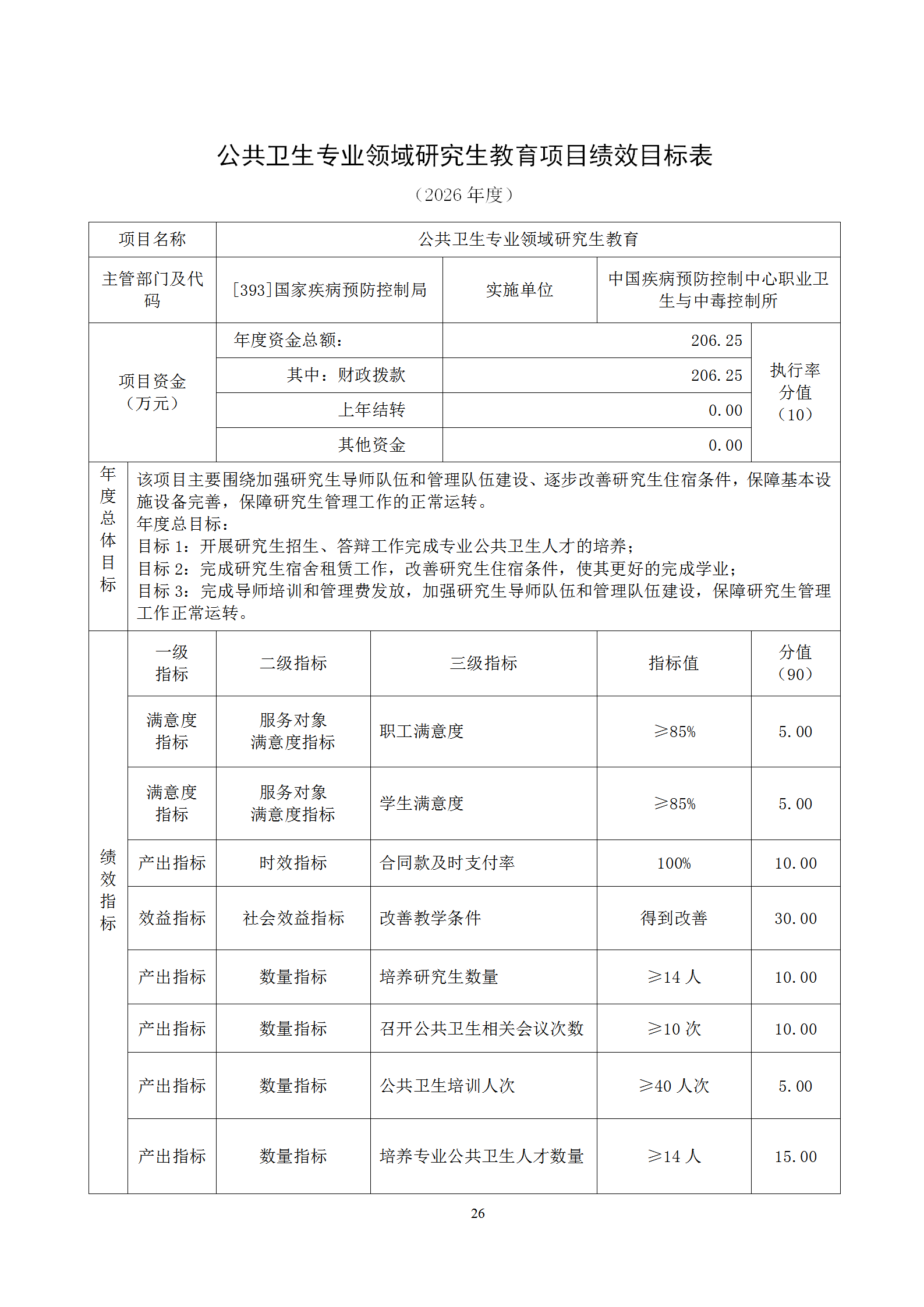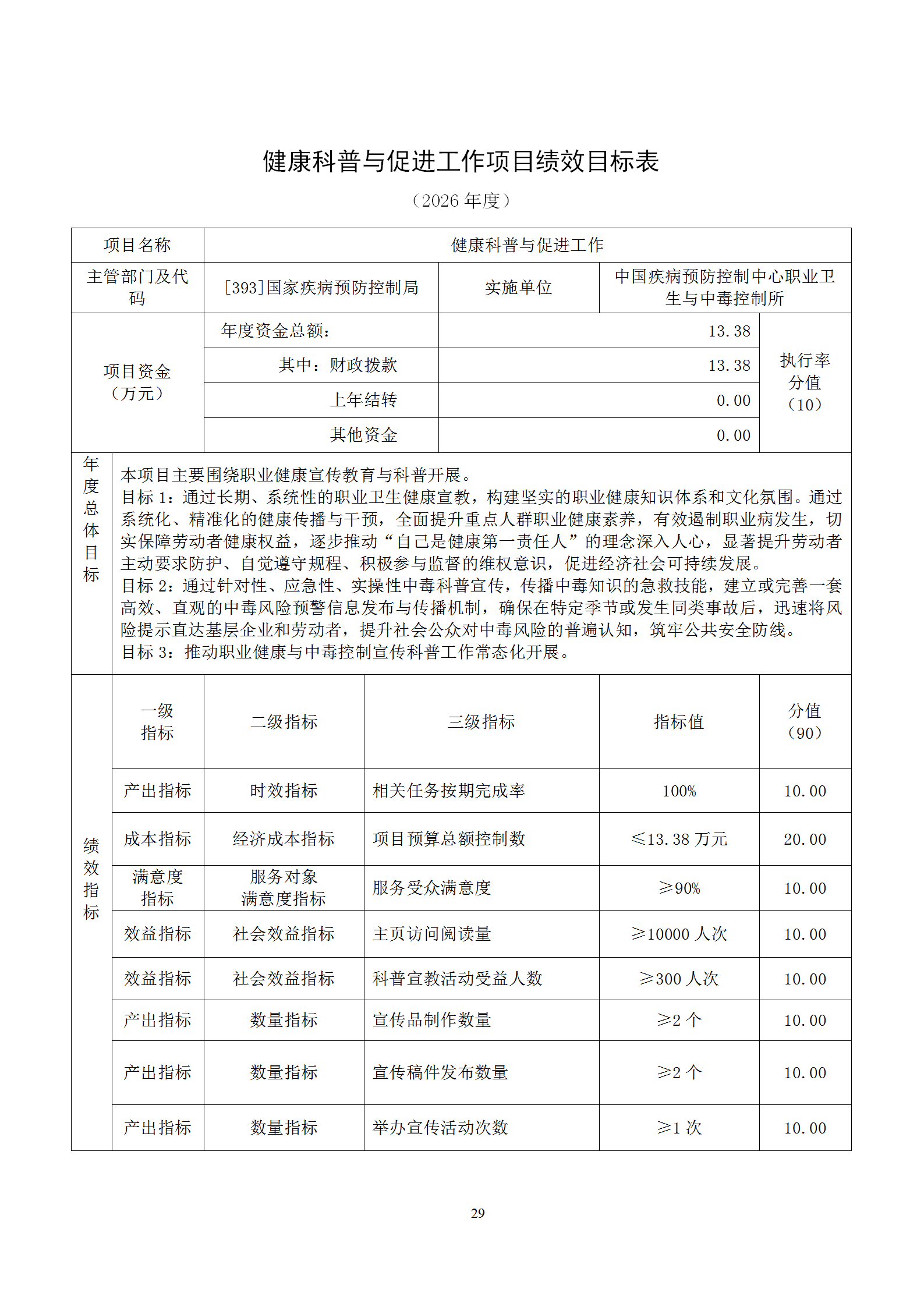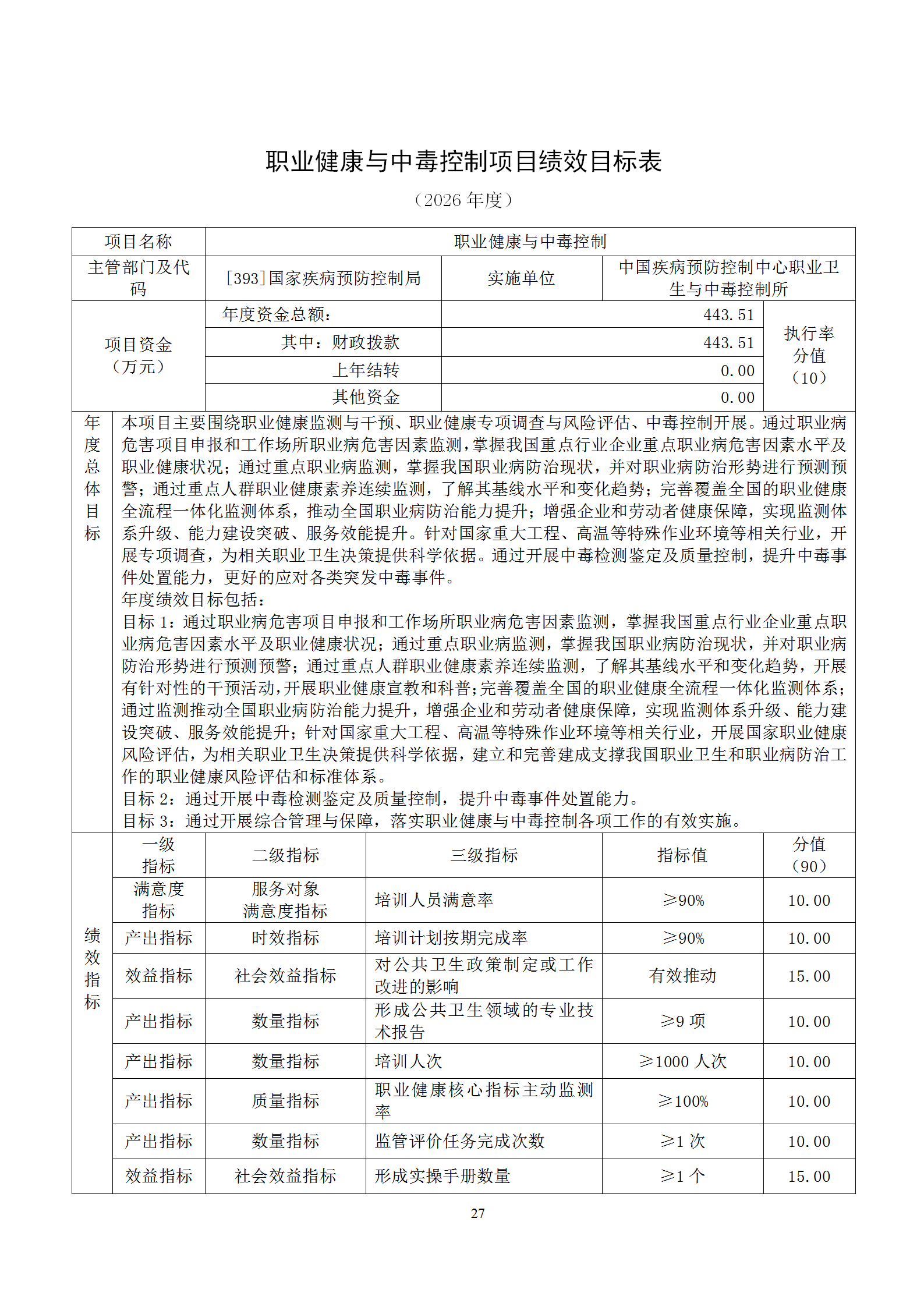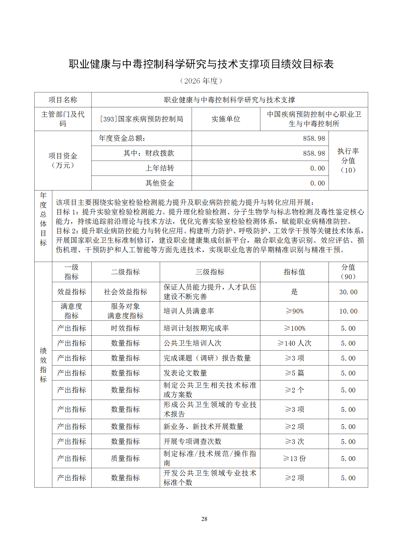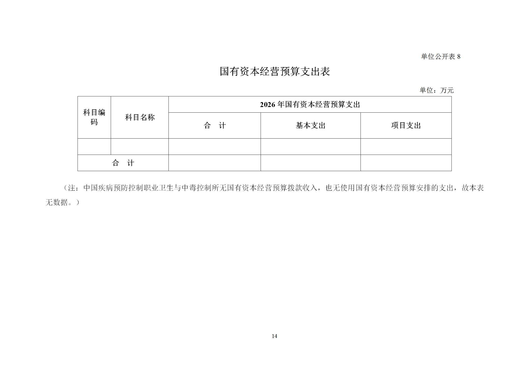 中国疾病预防控制中心职业卫生与中毒控制所2026年部门预算