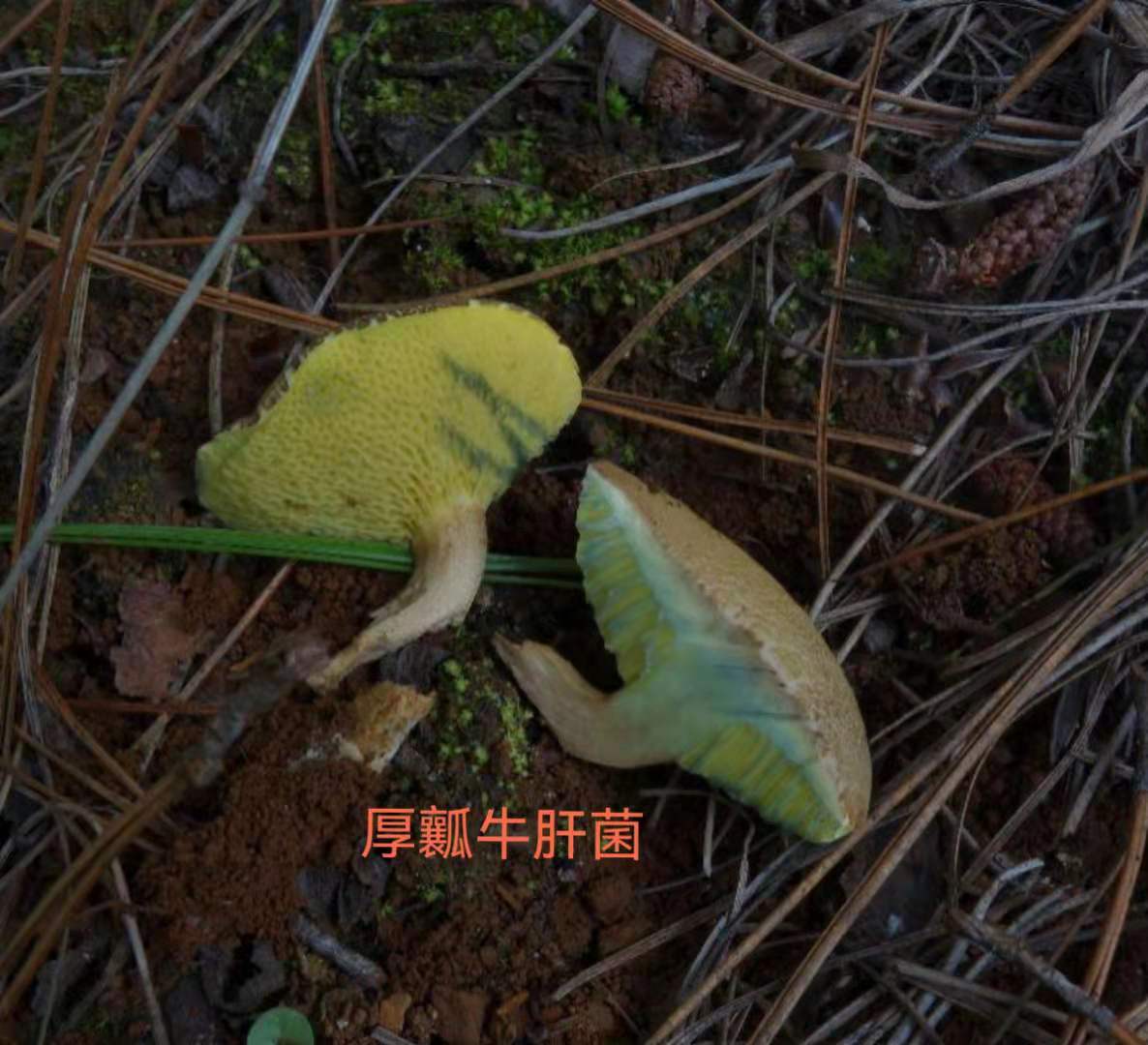 牛肝菌是典型的“伞菌”,由菌盖和菌柄组成,色泽丰富多彩,有些物种手触及就出现青色,又称“见手青”。有的物种受伤就魔术般变色,很神奇吧!