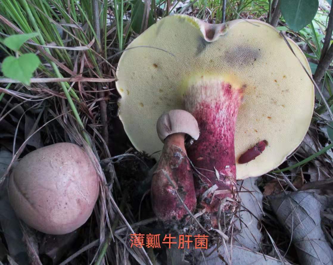 常见绝对可靠的可食牛肝菌:如茶褐新牛肝菌(Neoboletus brunneissimus,俗称黑牛肝、黑荞巴)、皱盖牛肝菌(Rugiboletus extremiorientalis,俗称黄赖头)、白牛肝菌(Boletus bainiugan,俗称大脚菇或粗腿菇)、美味牛肝菌(Boletus edulis)等。
