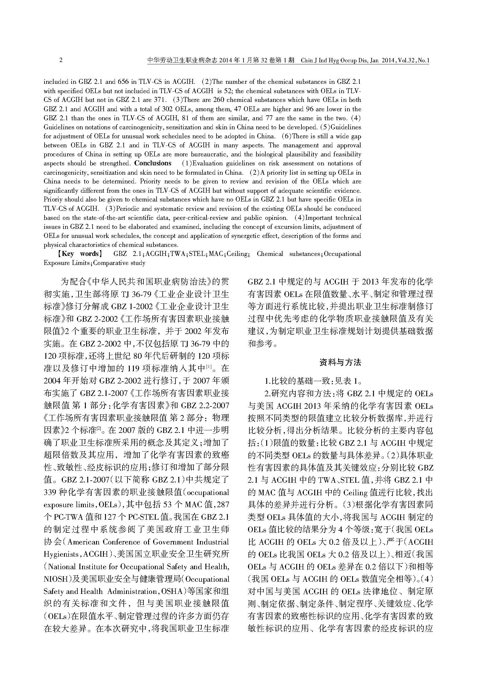中国GBZ2.1与美国ACGIH工作场所化学有害因素职业接触限值比较研究.pdf
